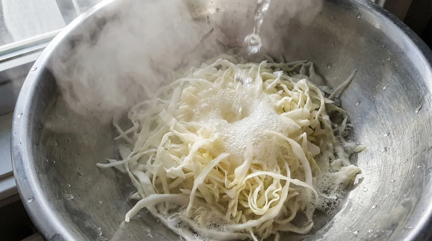 Der Trick der Profis ist so simpel wie brillant. Wenn du rohen, fein geschnittenen Weißkohl mit kochendem Wasser übergießt, passiert etwas, das wie Magie wirkt, aber reine Physik ist. Die immense Hitze attackiert die robusten Zellwände augenblicklich. Der Kohl fällt in sich zusammen, verliert sein störrisches Volumen und wird sofort weich. Doch hier lauert ein entscheidender Fehler: Würdest du ausschließlich kochendes Wasser verwenden, hättest du nach drei Minuten einen matschigen, traurigen Kohlbrei. Es fehlt der Widerstand im Biss.